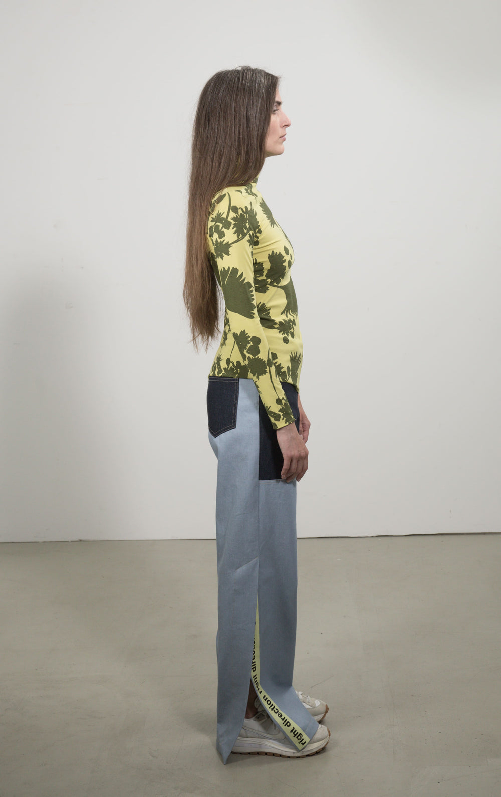 Turtleneck Joy cradles the upper body with an exquisite blend of comfort and femininity. The lovely floral pattern stands out against the subtle hue of soft yellow, crafted from a combination of cotton and recycled polyester for a luxurious yet sustainable feel.